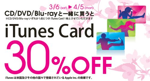 Tweet iPhoneユーザーに必須のiTunes Card。そのiTunes Cardの割引キャンペーンがHMVで開始されました。このキャンペーンはHMVの実店舗でCD/DVD/Blu-rayを購入するという条件こそあるものの、サンクスなどが実施している20%を上回る「割引率30%!」になりま…