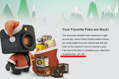 Tweet iPhone用トイカメラアプリとして有名なHipstamatic。 そのHipstamaticで、過去に配布していたレンズやフィルムなどがセットになったレトロパックが12月16日〜18日(現地時間)の3日間のみ350円($3.99)で発売されます。